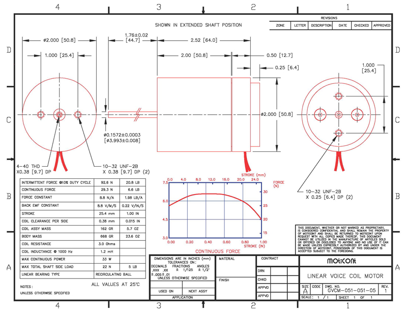 Force: 6.6 lb (29.3 N), Stroke: 1.00 in (25.4 mm)
