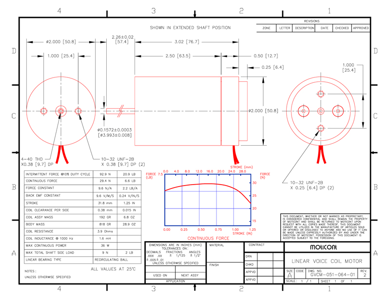 Force: 6.6 lb (29.4 N), Stroke: 1.25 in (31.8 mm)