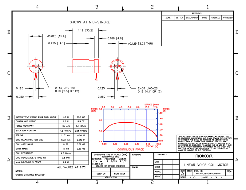 Continuous Force: 5.3 oz (1.5 N), Stroke: 0.50 in (12.7 mm), Aperture: 3.2 mm, Aperture: 3.2 mm