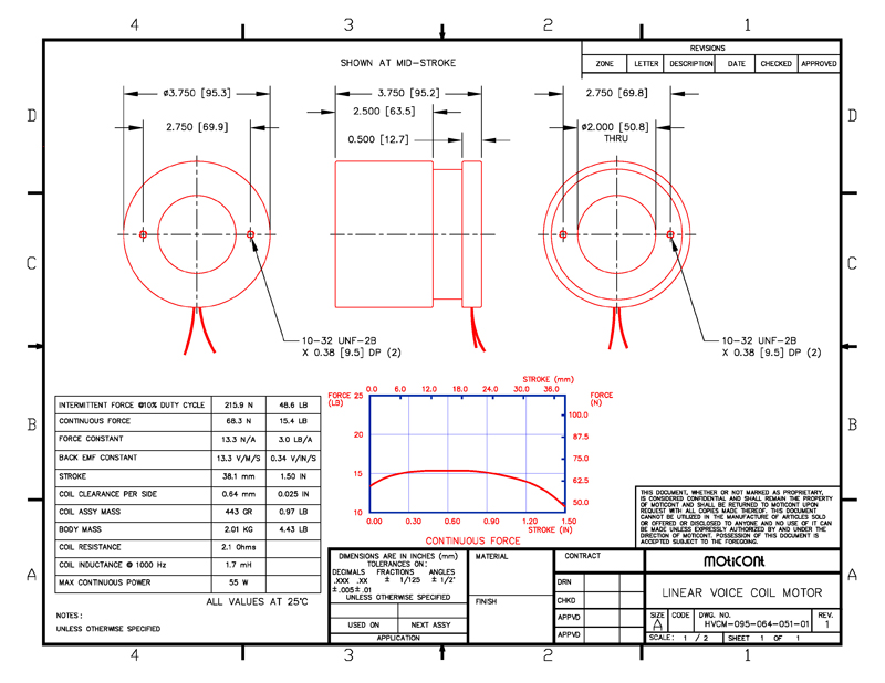 positioning. The HVCM-095-064-051-01 Servo Motor has a continuous force rating