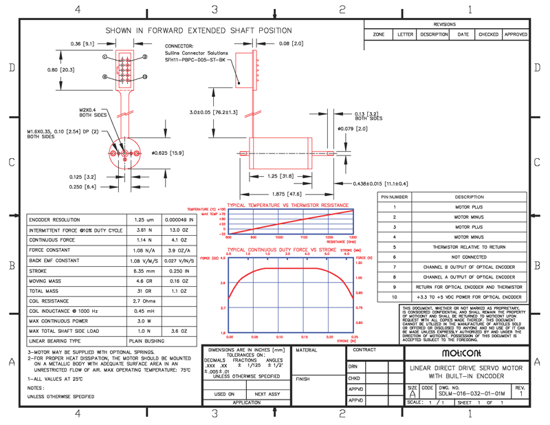 Direct Drive Linear Servo Motor Actuator with Built-in Encoder - SDLM-016-032-01-01