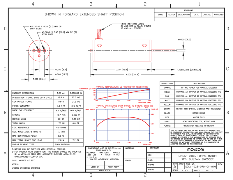 Direct Drive Linear Motors with Built-in Encoder - SDLM-025-070-01-01