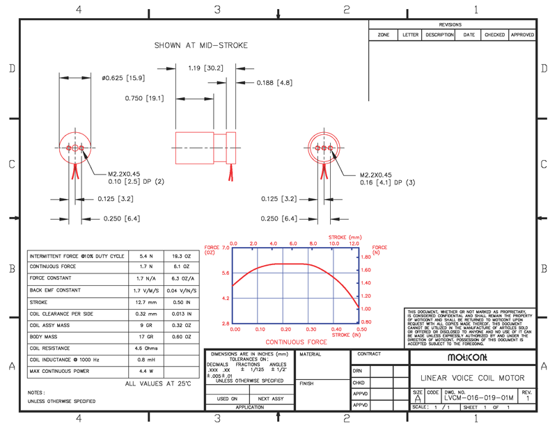 long at mid-stroke. The LVCM-016-019-01M (Metric) Linear